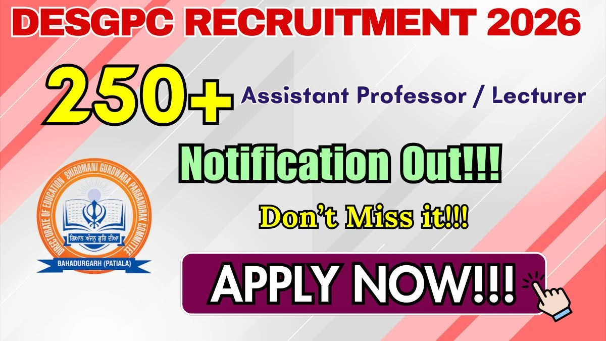 Directorate of Education, Shiromani Gurdwara Parbandhak Committee (DESGPC) invites applications from eligible candidates for 268 vacancies in Assistant Professor / Lecturer posts. Candidates can submit their applications online/ offline through the official portal at https://www.desgpc.org/. The application process starts from 16-04-2026 and the deadline to apply is 06-05-2026. Read the complete details about DESGPC Assistant Professor / Lecturer Recruitment 2026 including post details, educational qualifications, age criteria, selection procedure, and application process below.