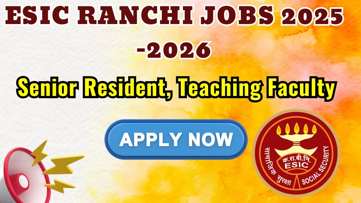 Employees State Insurance Corporation (ESIC Ranchi) invites applications from eligible candidates for 99 vacancies in Senior Resident, Teaching Faculty posts. Candidates can submit their applications online/ offline through the official portal at esic.gov.in. The application process starts from 24-12-2025 and the deadline to apply is 03-01-2026. Read the complete details about ESIC Ranchi Senior Resident, Teaching Faculty Recruitment 2025 including post details, educational qualifications, age criteria, selection procedure, and application process below.