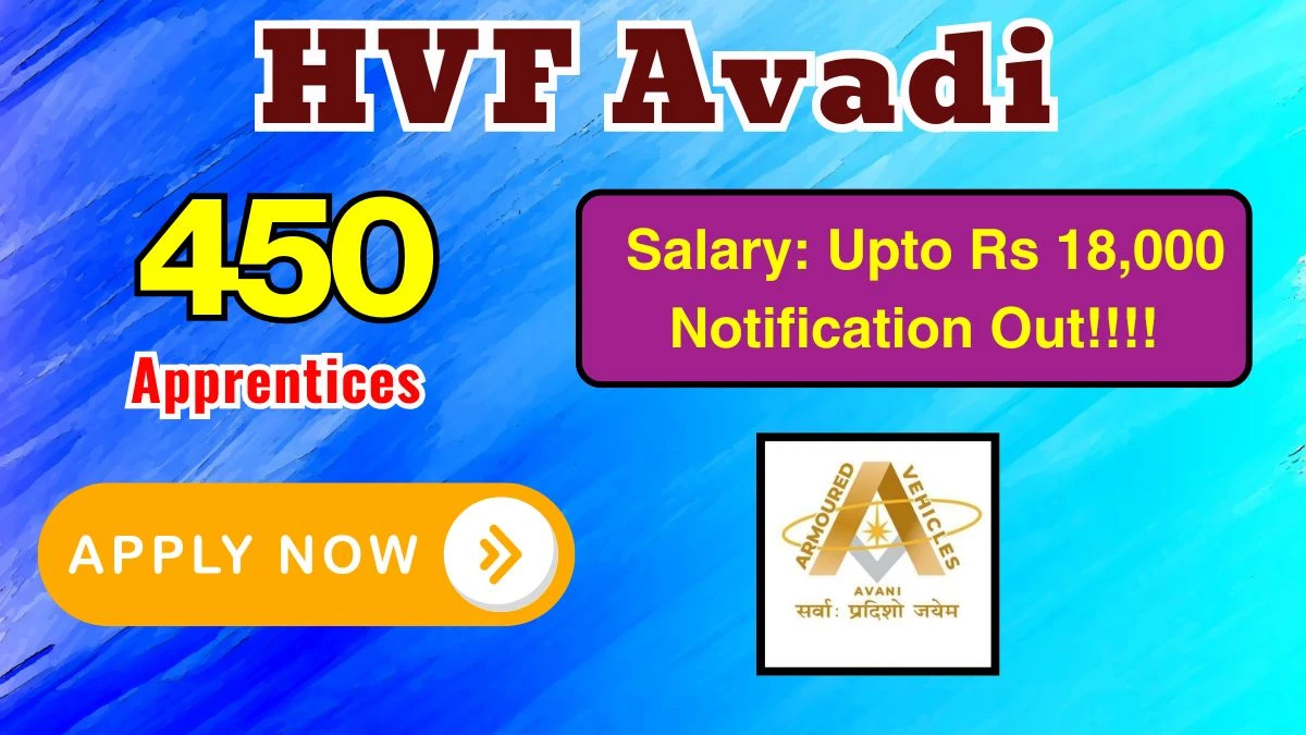 Heavy Vehicles Factory Avadi (HVF Avadi) invites applications from eligible candidates for 450 vacancies in Apprentices posts. Candidates can submit their applications online/ offline through the official portal at https://avnl.co.in/. The application process starts from 16-03-2026 and the deadline to apply is 20-04-2026. Read the complete details about HVF Avadi Apprentices Recruitment 2026 including post details, educational qualifications, age criteria, selection procedure, and application process below.
