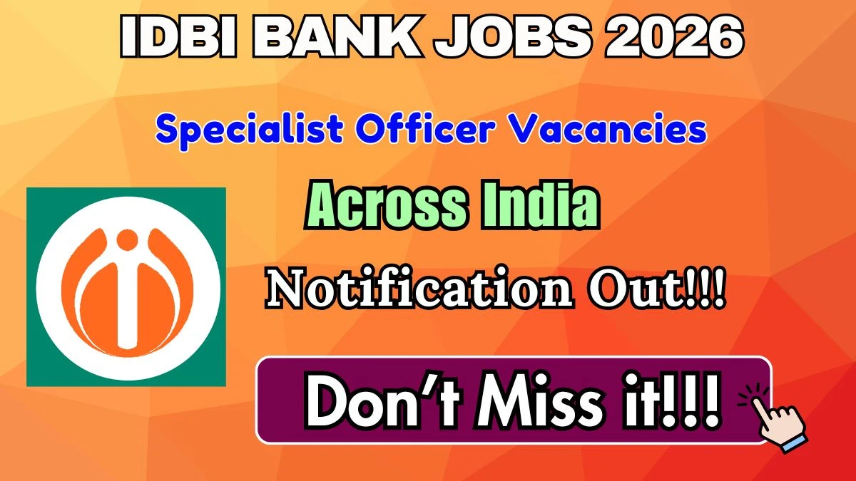 Industrial Development Bank of India (IDBI Bank) invites applications from eligible candidates for 33 vacancies in Specialist Officer posts. Candidates can submit their applications online/ offline through the official portal at https://www.idbi.bank.in/. The application process starts from 25-03-2026 and the deadline to apply is 08-04-2026. Read the complete details about IDBI Bank Specialist Officer Recruitment 2026 including post details, educational qualifications, age criteria, selection procedure, and application process below.