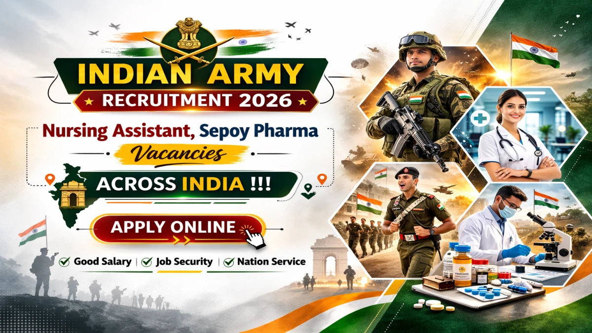 Indian Army (Indian Army) invites applications from eligible candidates for Not Mentioned vacancies in Nursing Assistant, Sepoy Pharma posts. Candidates can submit their applications online/ offline through the official portal at https://www.joinindianarmy.nic.in/. The application process starts from 13-02-2026 and the deadline to apply is 01-04-2026. Read the complete details about Indian Army Nursing Assistant, Sepoy Pharma Recruitment 2026 including post details, educational qualifications, age criteria, selection procedure, and application process below.