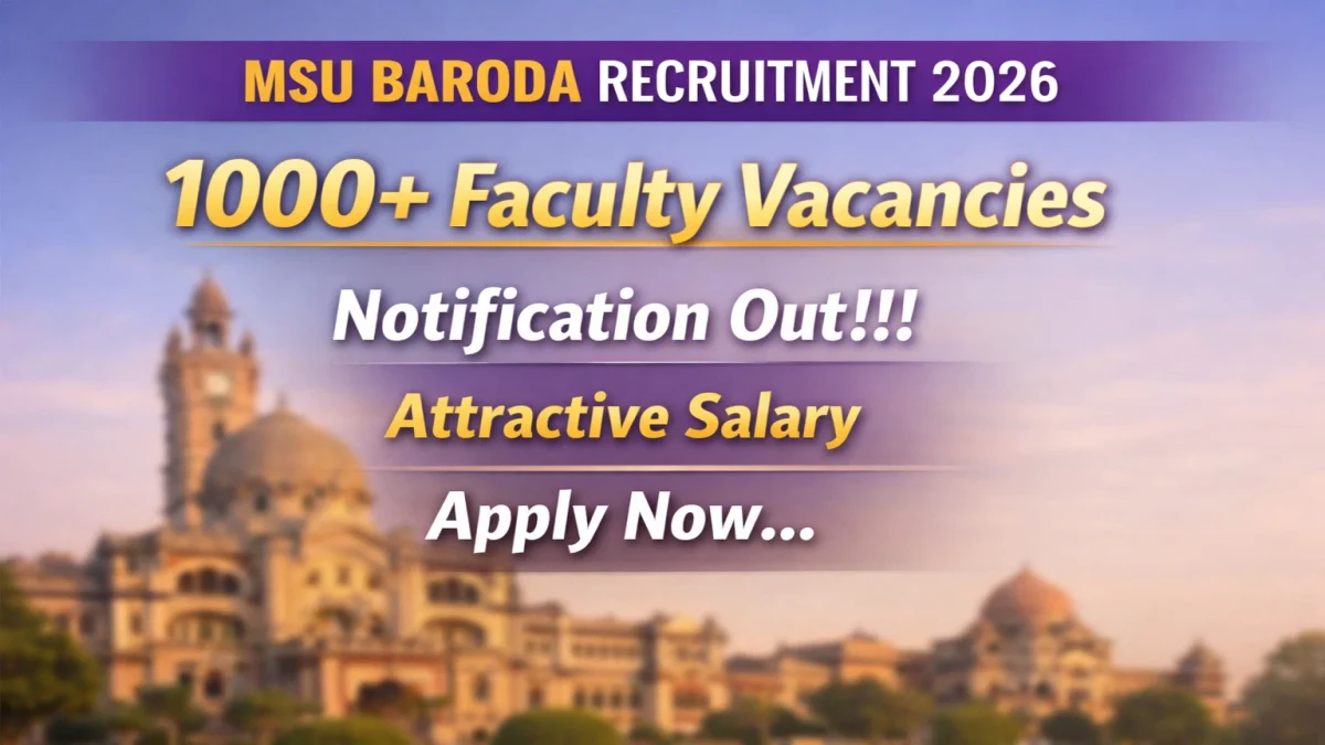 The Maharaja Sayajirao University of Baroda (MSU Baroda) invites applications from eligible candidates for 1010 vacancies in Faculty posts. Candidates can submit their applications online/ offline through the official portal at https://www.msubaroda.ac.in/. The application process starts from 07-04-2026 and the deadline to apply is 30-04-2026. Read the complete details about MSU Baroda Faculty Recruitment 2026 including post details, educational qualifications, age criteria, selection procedure, and application process below.