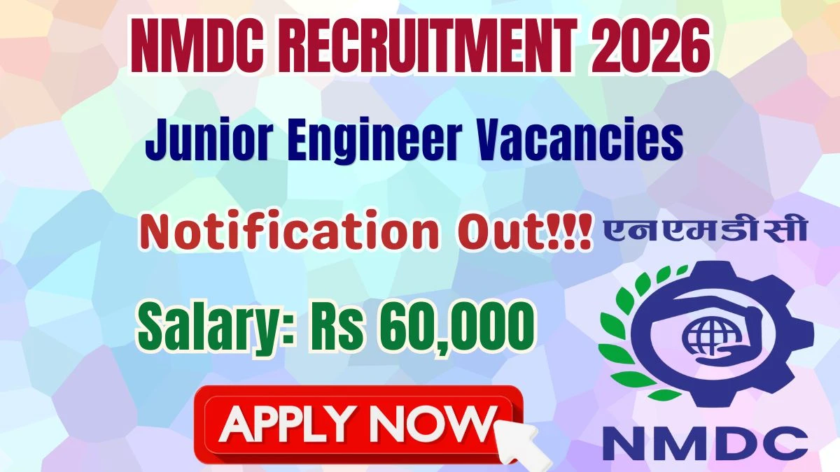 National Mineral Development Corporation (NMDC) invites applications from eligible candidates for 59 vacancies in Junior Engineer posts. Candidates can submit their applications online/ offline through the official portal at https://www.nmdc.co.in/. The application process starts from 22-04-2026 and the deadline to apply is 06-05-2026. Read the complete details about NMDC Junior Engineer Recruitment 2026 including post details, educational qualifications, age criteria, selection procedure, and application process below.