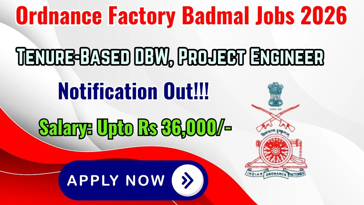 Ordnance Factory Badmal (Ordnance Factory Badmal) invites applications from eligible candidates for 86 vacancies in Tenure-Based DBW, Project Engineer posts. Candidates can submit their applications online/ offline through the official portal at https://ddpdoo.gov.in/. The application process starts from 16-03-2026 and the deadline to apply is 05-04-2026. Read the complete details about Ordnance Factory Badmal Tenure-Based DBW, Project Engineer Recruitment 2026 including post details, educational qualifications, age criteria, selection procedure, and application process below.