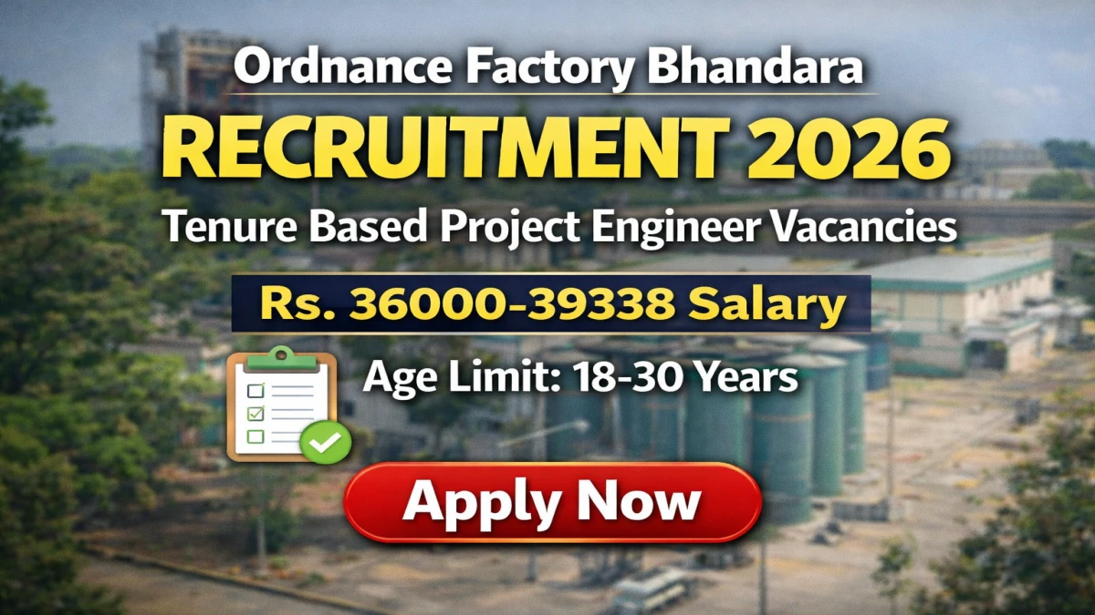 Ordnance Factory Bhandara (Ordnance Factory Bhandara) invites applications from eligible candidates for 30 vacancies in Tenure Based Project Engineer posts. Candidates can submit their applications online/ offline through the official portal at https://ddpdoo.gov.in/. The application process starts from 28-03-2026 and the deadline to apply is 11-04-2026. Read the complete details about Ordnance Factory Bhandara Tenure Based Project Engineer Recruitment 2026 including post details, educational qualifications, age criteria, selection procedure, and application process below.