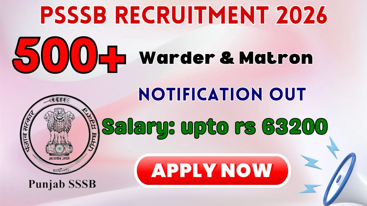 Punjab Subordinate Services Selection Board (PSSSB) invites applications from eligible candidates for 532 vacancies in Warder and Matron posts. Candidates can submit their applications online/ offline through the official portal at https://sssb.punjab.gov.in/. The application process starts from 01-04-2026 and the deadline to apply is 21-04-2026. Read the complete details about PSSSB Warder and Matron Recruitment 2026 including post details, educational qualifications, age criteria, selection procedure, and application process below.