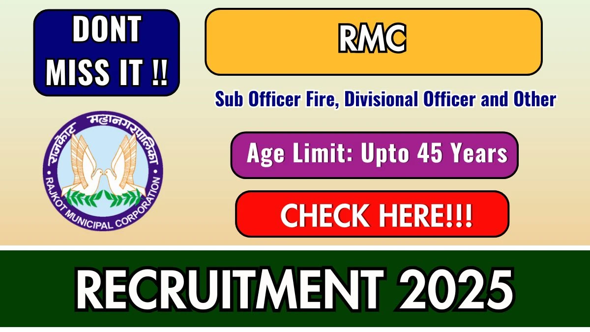 Rajkot Municipal Corporation (RMC) invites applications from eligible candidates for 117 vacancies in Sub Officer Fire, Divisional Officer and Other posts. Candidates can submit their applications online/ offline through the official portal at rmc.gov.in. The application process starts from 14-12-2025 and the deadline to apply is 29-12-2025. Read the complete details about RMC Sub Officer Fire, Divisional Officer and Other Recruitment 2025 including post details, educational qualifications, age criteria, selection procedure, and application process below.