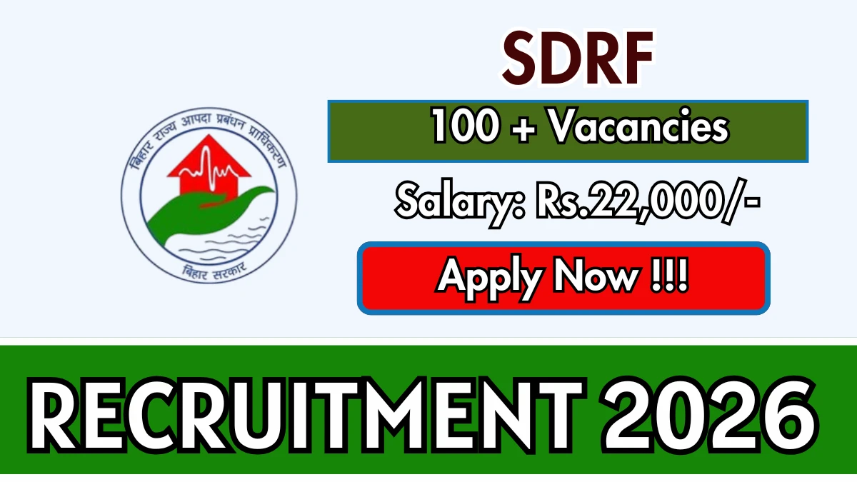 Bihar State Disaster Response Force (Bihar SDRF) invites applications from eligible candidates for 118 vacancies in Cook, Water Carrier And More posts. Candidates can submit their applications online/ offline through the official portal at state.bihar.gov.in. The application process starts from 29-12-2025 and the deadline to apply is 27-01-2026. Read the complete details about Bihar SDRF Cook, Water Carrier And More Recruitment 2026 including post details, educational qualifications, age criteria, selection procedure, and application process below.