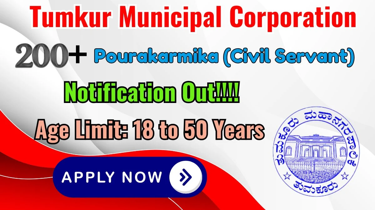 Tumkur Municipal Corporation (Tumkur Municipal Corporation) invites applications from eligible candidates for 238 vacancies in Pourakarmika (Civil Servant) posts. Candidates can submit their applications online/ offline through the official portal at http://tumakurududc.mrc.gov.in/. The application process starts from Available Soon and the deadline to apply is 08-04-2026. Read the complete details about Tumkur Municipal Corporation Pourakarmika (Civil Servant) Recruitment 2026 including post details, educational qualifications, age criteria, selection procedure, and application process below.